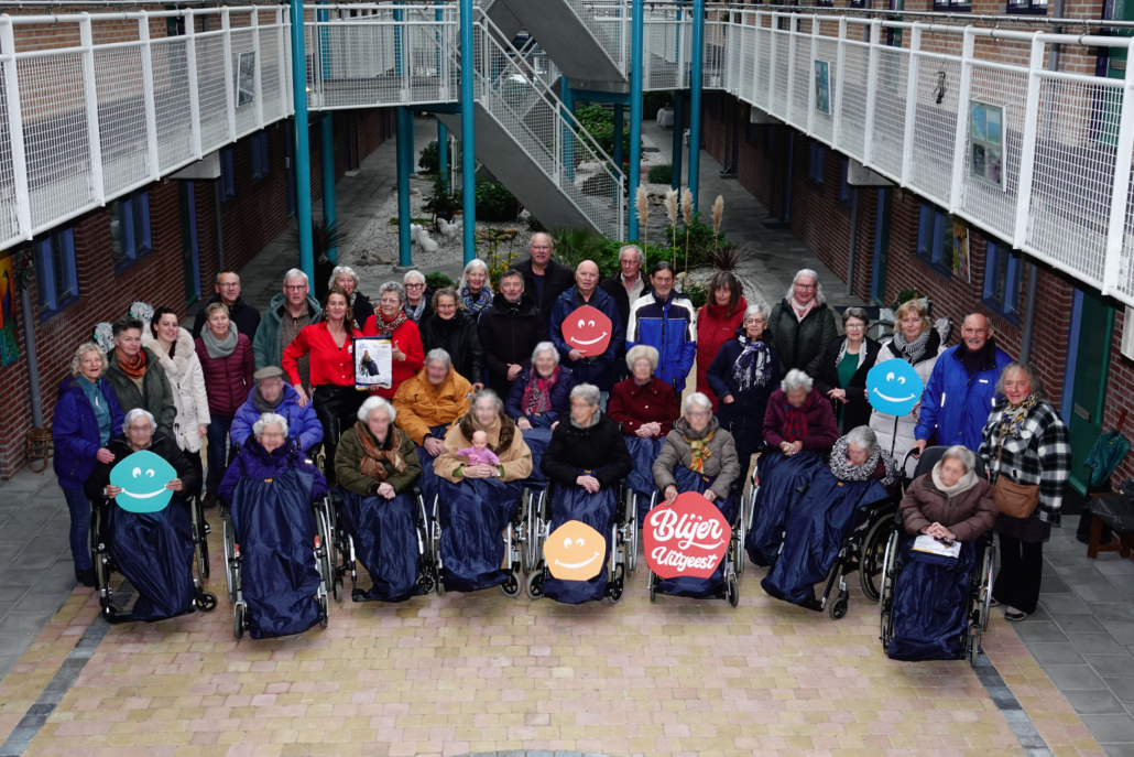 Nadat Blijer Uitgeest al eerder rolstoelen heeft geschonken, was er nog een wens voor regenkleden, om over de benen te leggen. Dat helpt om warm en droog te blijven tijdens de wandeling. Samen met Ton Scholten tegels en sanitair en de vrienden van Ursula heeft Blijer Uitgeest deze kleden geschonken. Ze werden feestelijk in ontvangst genomen door een blije wandelgroep. De groep kan nu heerlijk blijven genieten van hun rondje om, zelfs als het regent of hard waait. Daar word je toch blij van?